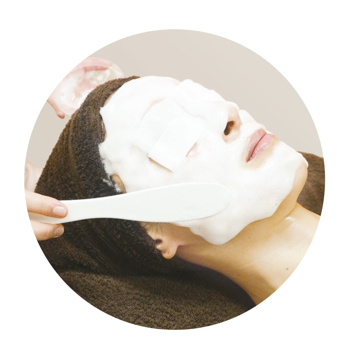 ④スパチュラを使って目・口を避け顔全体に塗布します。