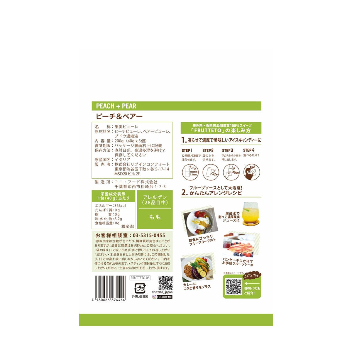 商品名:Frutteto(フルッテート)ピーチ&ペアー 40g×5個入