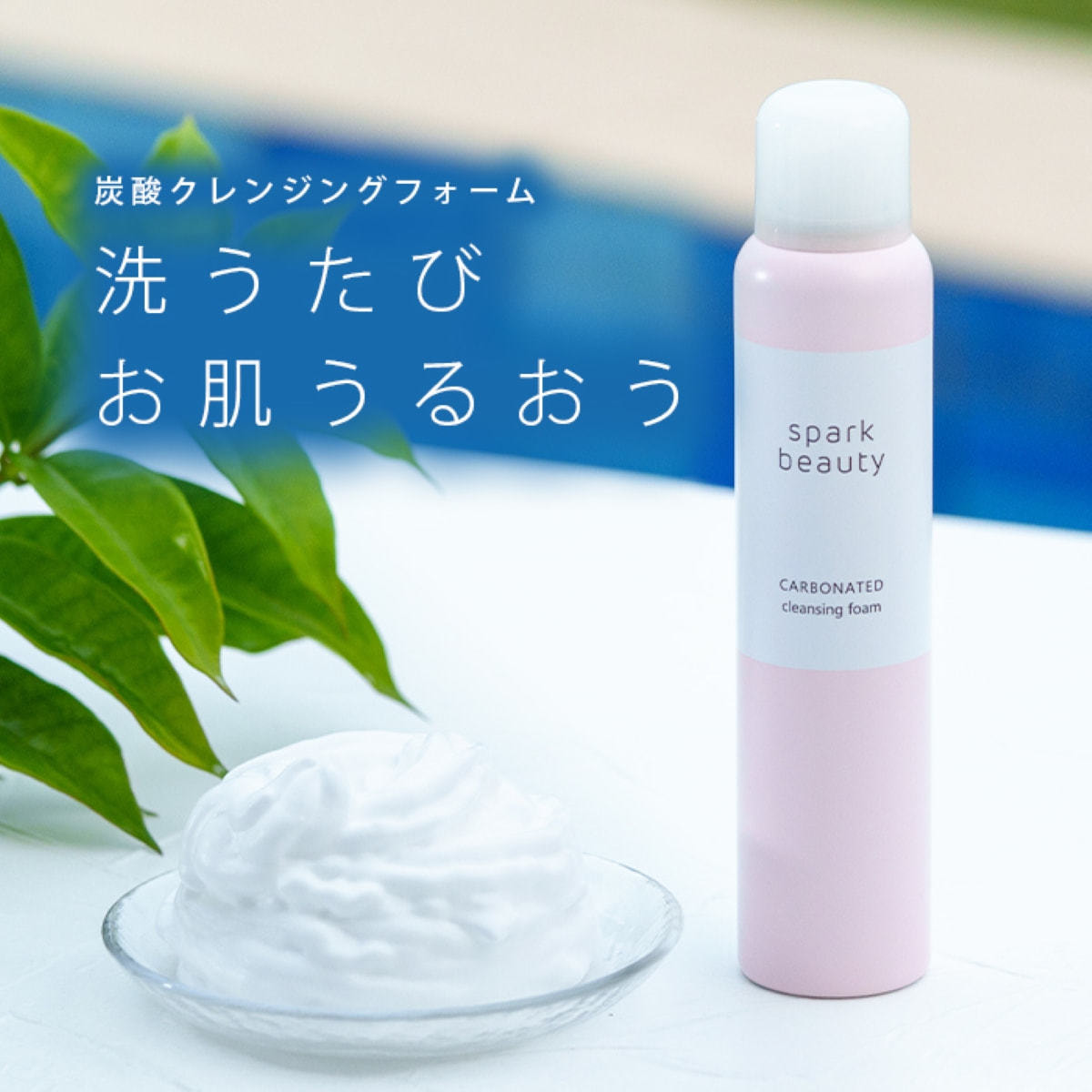 『sparkbeauty 炭酸クレンジングフォーム』はお肌に必要な油分や保湿成分をそのままに、メイク汚れを炭酸泡で素早く落とします。