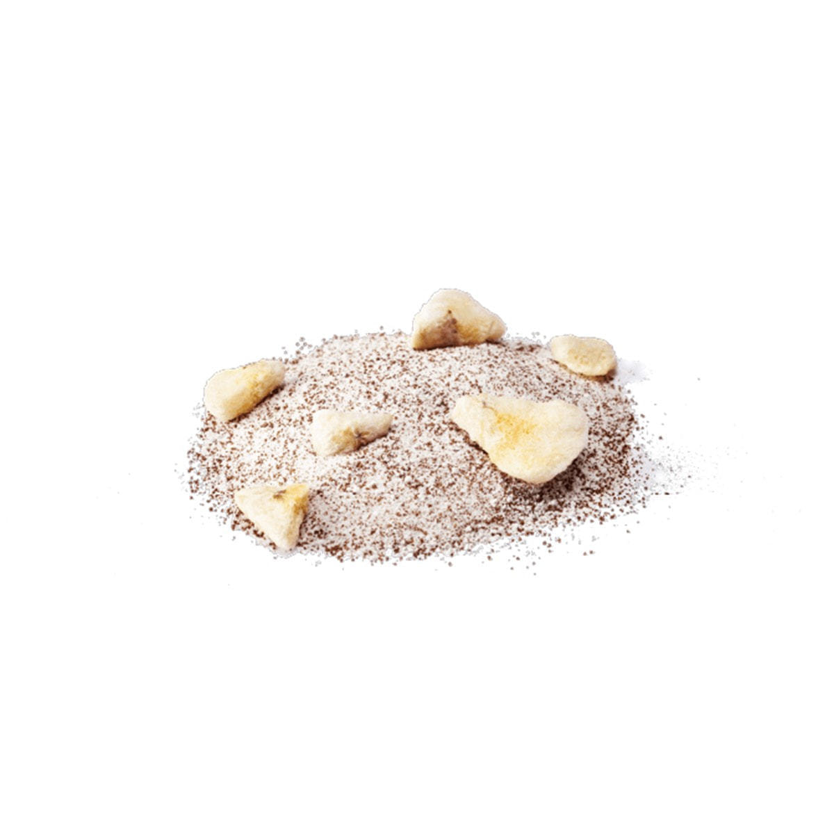 ホエイプロテインパウダー(ドイツ製造、国内製造)、粉末状大豆たん白、マルトデキストリン、乾燥バナナ、インスタントコーヒー(コーヒー豆(インドネシア))、酵母エキスパウダー、桜の花エキスパウダー/乳化剤、微粒二酸化ケイ素、甘味料(ステビア)、香料、(一部に乳成分・大豆・バナナを含む)