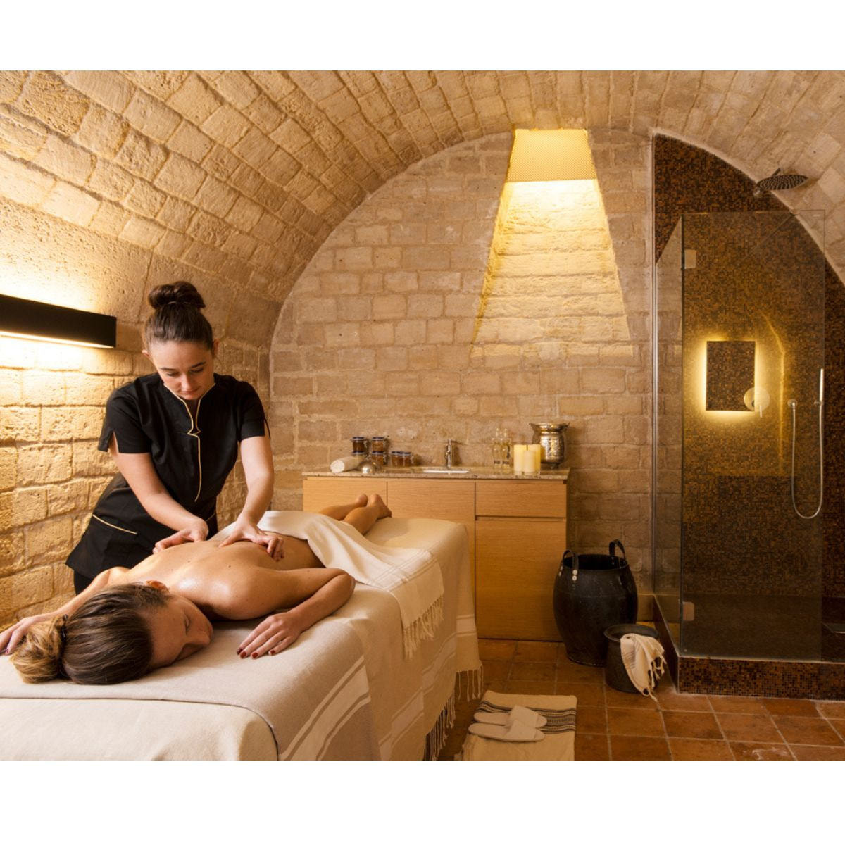 「ハマム」とはトルコやアラブ諸国など中東全域、中央アジア諸国、東アジア諸国に広く見られる伝統出来な公衆浴場のことです。乾燥の強い地域に根付いた文化で、浴室は通常「蒸し風呂」で浴槽からのぼった蒸気で汗を出し、あかすり師によるあかすりやマッサージが受けられ、古くからその地方の美容と健康を支える存在でした。そのマッサージで使用するオイルはどれも濃厚で香りへの強いこだわりがありました。その「ハマム」で発達した文化を伝えるために、ルーツをモロッコにもつYasmina氏と息子のSofiane氏によって1998年フランスで誕生したのがCHARM D’ORIENTです。
