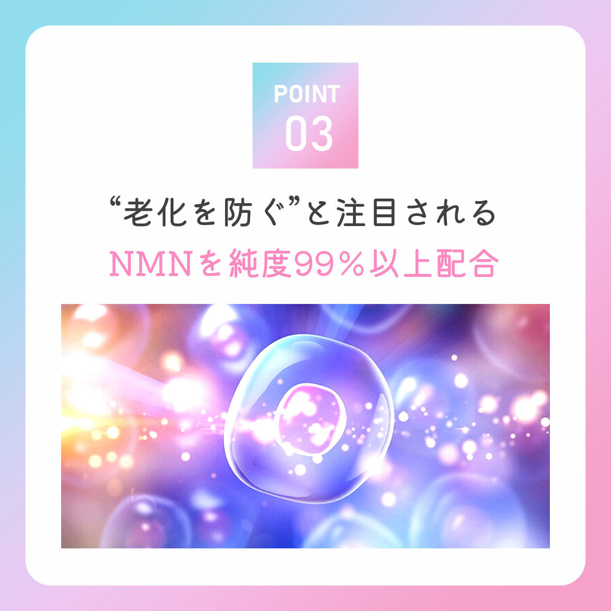 お肌のハリや弾力に必要なヒアルロン酸とエイジングケア効果が期待できるNMNの美容成分が濃密に凝縮されています。